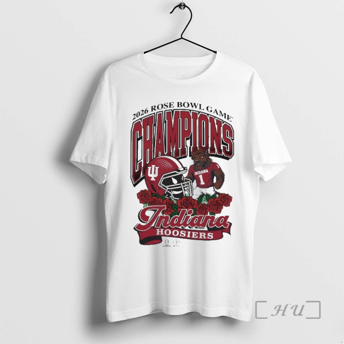 Officials Indiana Hoosiers 2026 Rose Bowl Game Champions Bison Mascot And Helmet Premium T Shirts