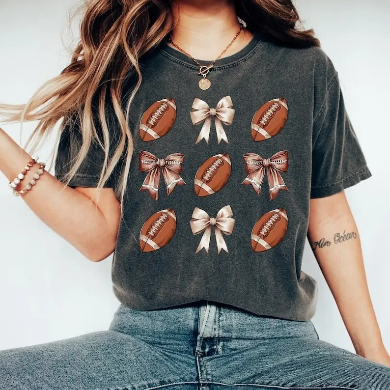 Pink Coquette Football Shirt, Sports Gift, Gameday Shirt, Football Gift Shirt, Football Bow Tee Casual Clothing Crewneck Fit