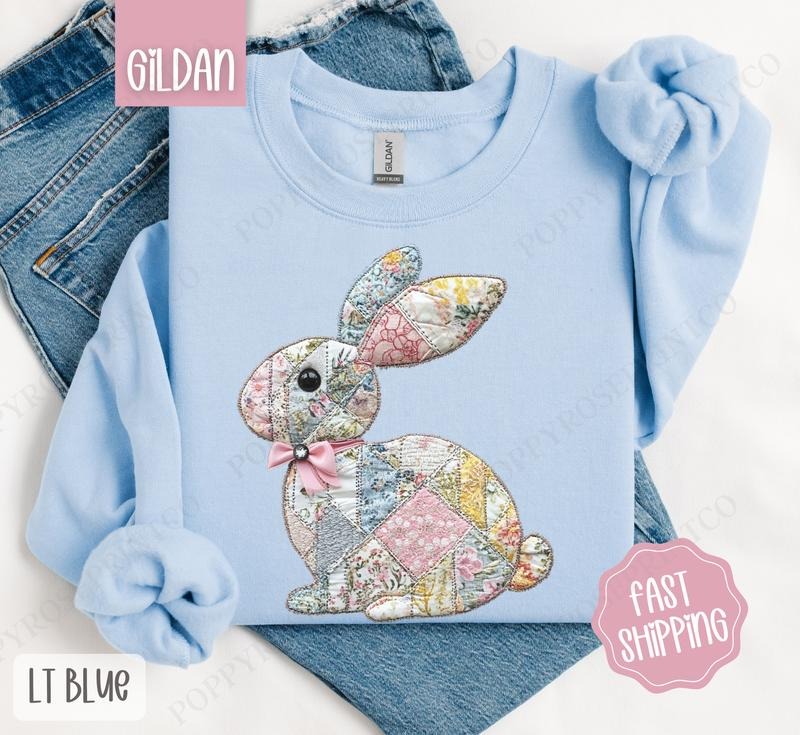 Quilted Bunny Sweatshirt, Cute Easter Sweater, Trendy Bunny Crewneck