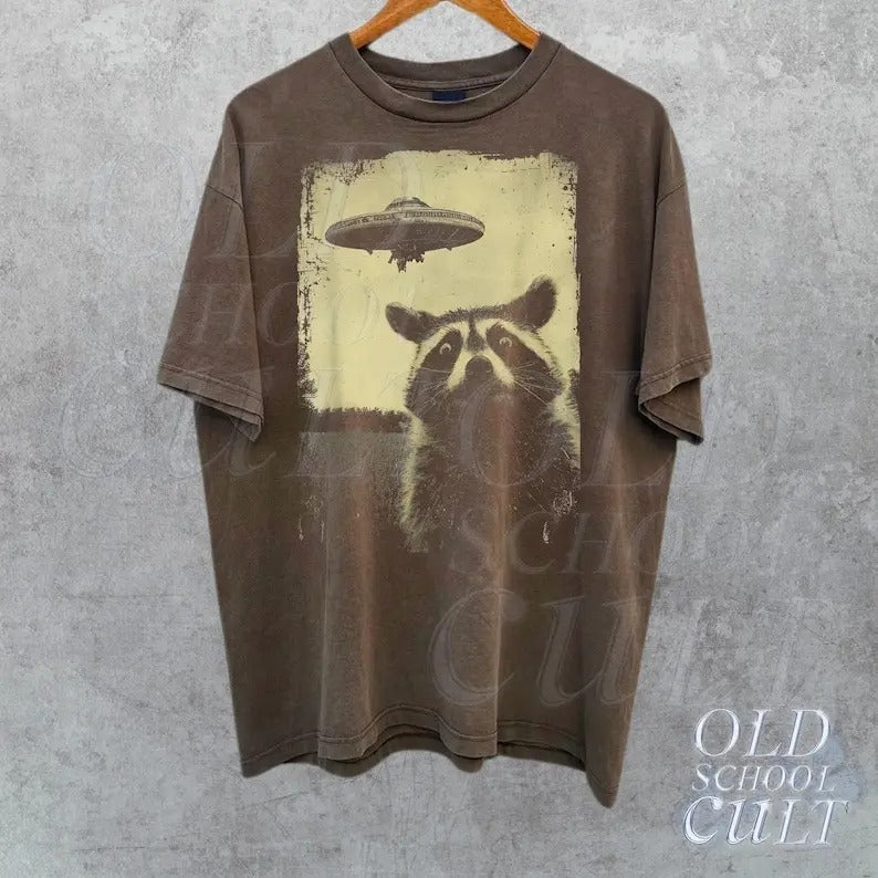 Raccoon Ufo Funny Graphic T Shirt, Retro Alien Shirt, Cool Vintage Style Raccon Shirt, Relaxed Cotton Shirt, Meme T Shirt,Raccon Lovers Gift