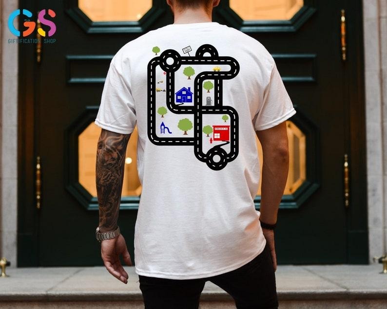 Race On Dad's T-shirt, Mat Road On Dad Shirt, Car Race Track T-Shirt, Funny Father's Day Gift From Kids, Playmat TShirt, Dad TShirt