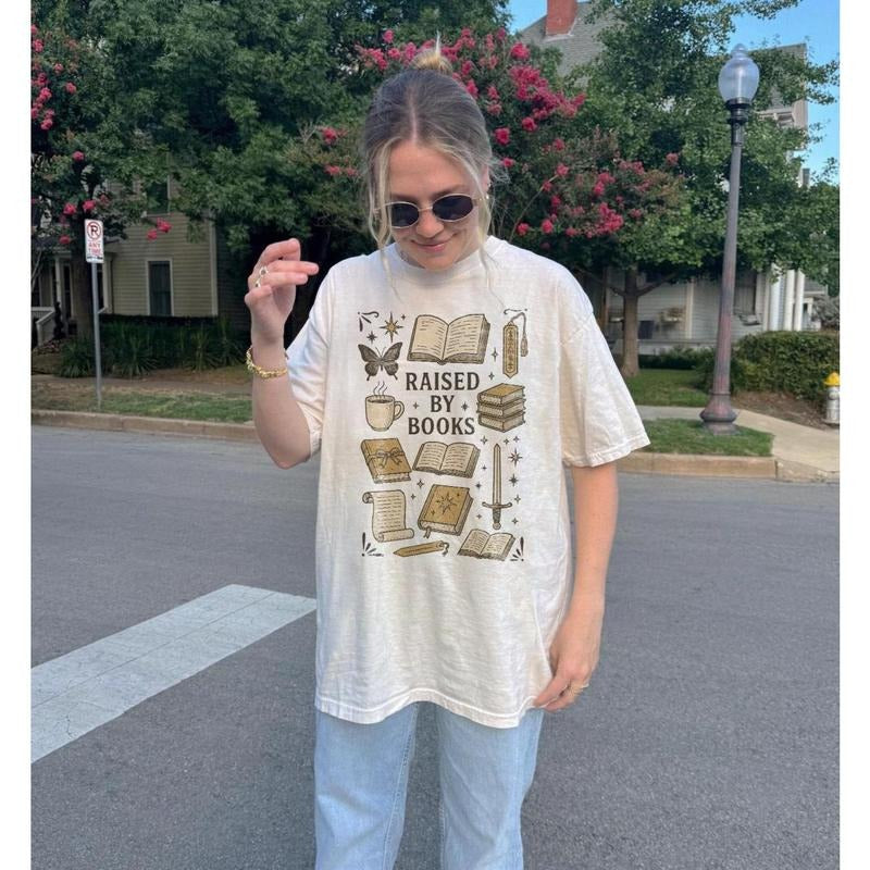 Raised By Books Shirt | Bookish Boho Floral TShirt Vintage Floral Nature Shirt Boho Book Tee Mystical Fantasy Reader Shirt Moth Casual Cotton