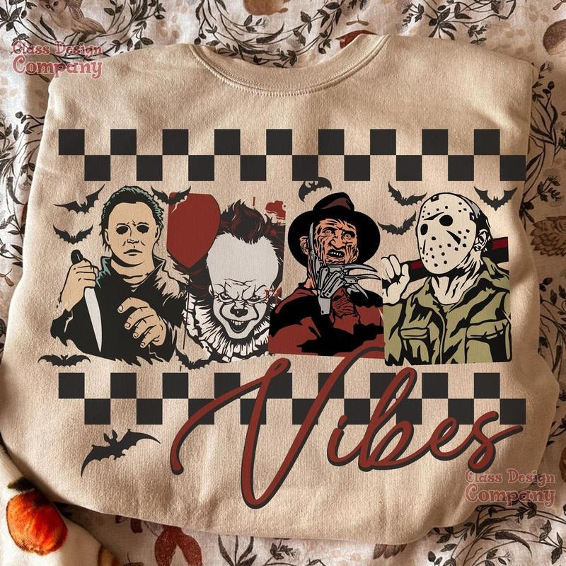 Retro Halloween Shirt, Horror Sublimation Tee, Spooky Vibes Design, Scary Movie Costume, Trendy Halloween Look