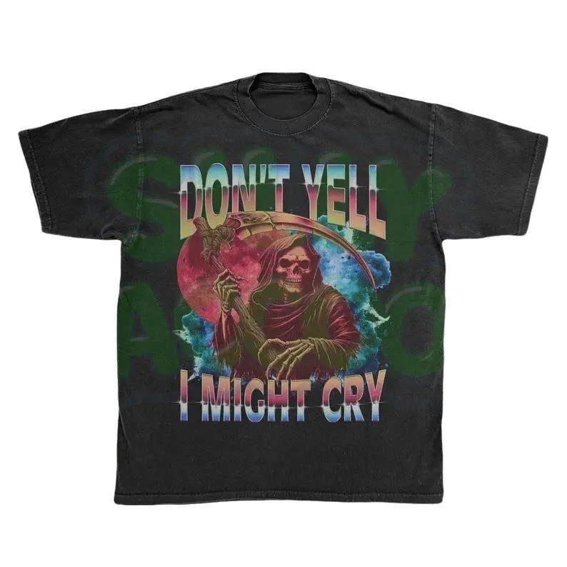 Sarcastic Grim Reaper Tee | Don't Yell I Might Cry Edgy Meme | Funny Gothic T-Shirt | Dark Humor Goth Shirt | Introvert Gift, Vintage Graphic Tee
