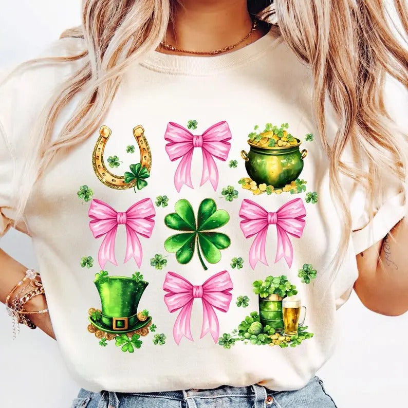 St Patrick Day Coquette Bow t-shirt,sweatshirt,hoodie, Lucky Shamrock sweatshirt, St Patrick Day hoodie, Irish Shamrock tshirt, St Pattys Day sweatshirt, Lucky Charm Png, Irish Png