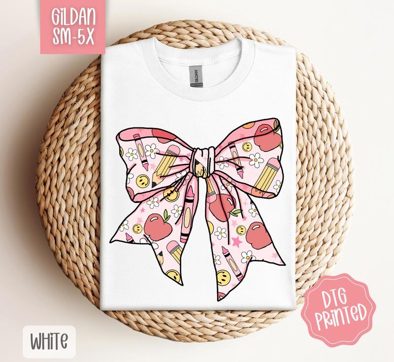 Teacher Bow Gildan Shirt, Cute School Tee, Gift for Her