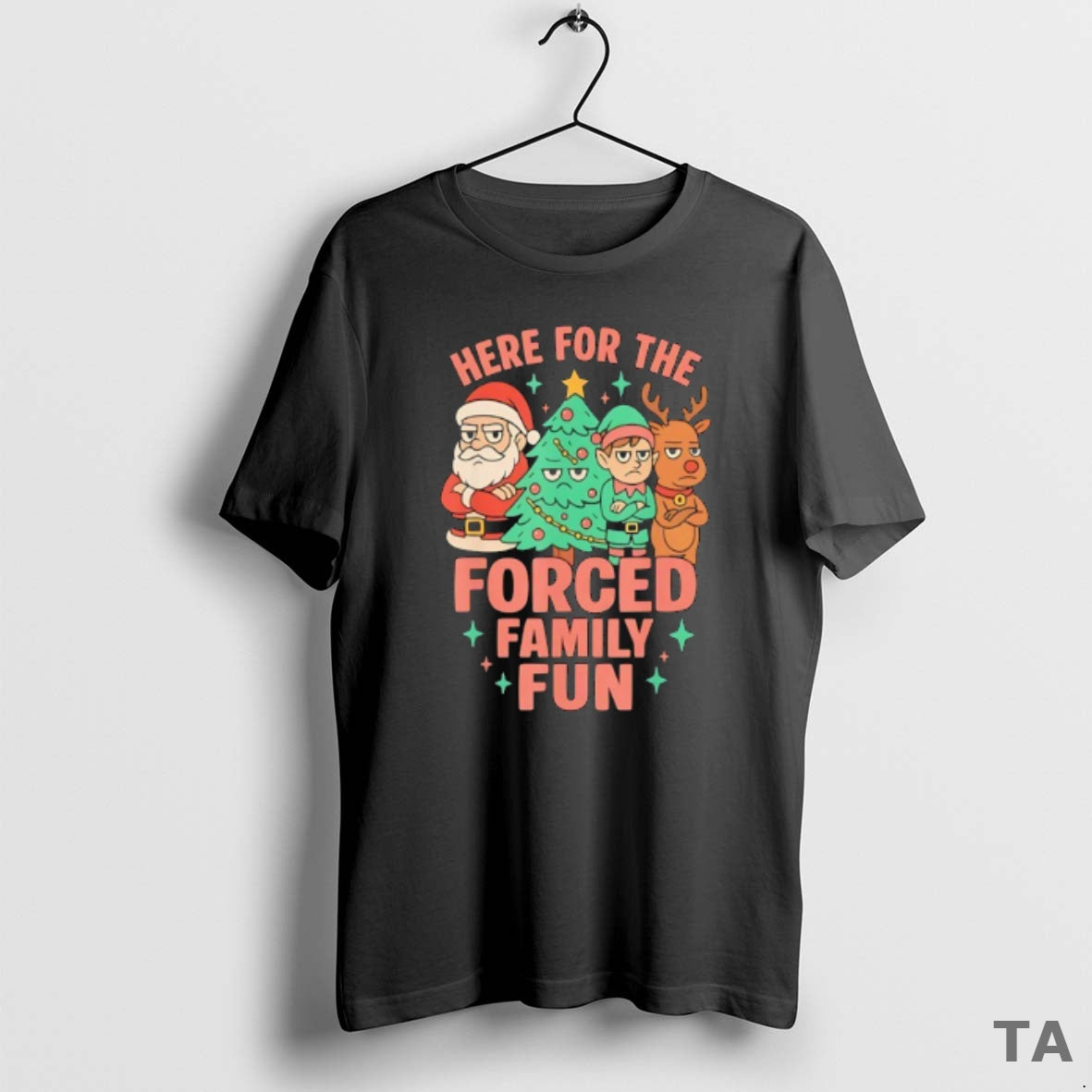 Top Santa Elf And Reindeer With Christmas Tree Here For The Forced Family Fun