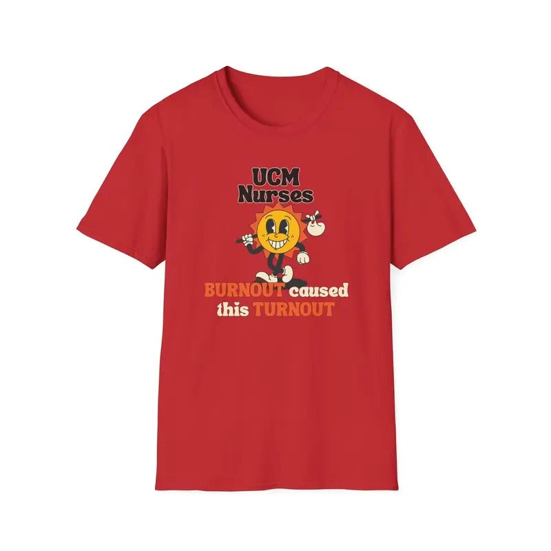UCM Nurses Strike Printed Cotton Unisex T-Shirt, UCM Nurses Sweatshirt, Funny Nurse Burnout Caused This Turnout Sweatshirt, Gift for nurse Casual Fabric Menswear Outfit Top Aesthetic Fitted Minimalist Fashion Shortsleeve Suits Underwear
