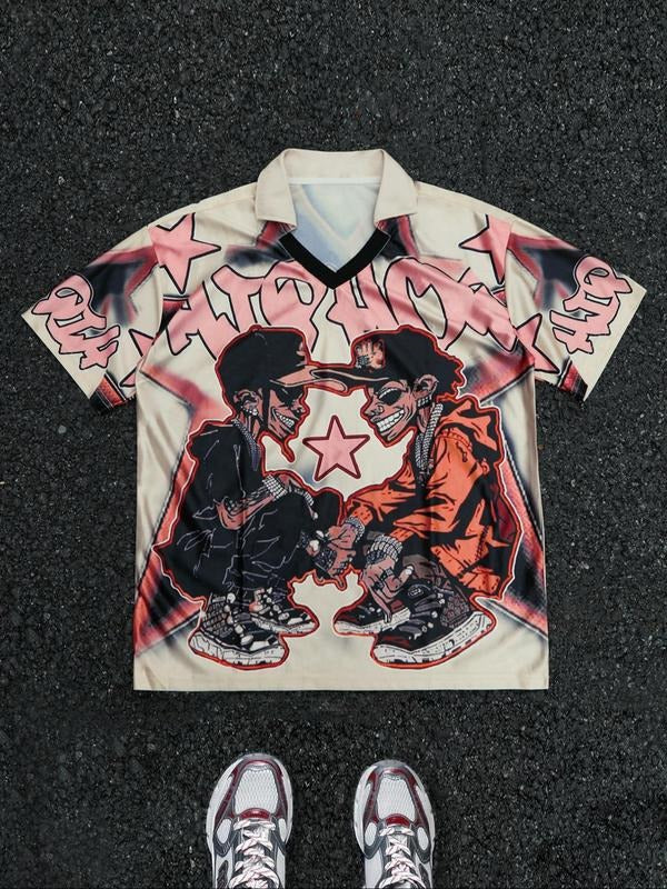 Unisex Men's Regular Fit Skull Print Polo Shirt, Casual Short Sleeve Funnel Neck Top for Daily Wear, Fashion Men's Clothes for All Seasons, Tropical