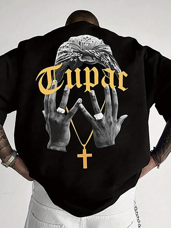 Unisex's Letter & Hand Print Round Neck Graphic Tee, Vintage Trendy Casual Short Sleeve T-shirt for Daily Wear, Ladies Summer Goth Clothing, Top