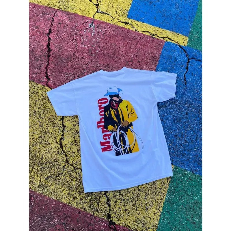 Vintage 80s 90s Marlboro Smoking Cowboy Western Man Smoking T-shirt, sweater and Hoodie 2 sides