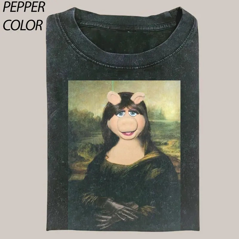 Vintage Cute Piggy Graphic Unisex Shirt, Cartoon Characters T-shirt, Funny Meme Graphic Tee, Valentine's Gift, Gift for Boyfriend Girlfriend's