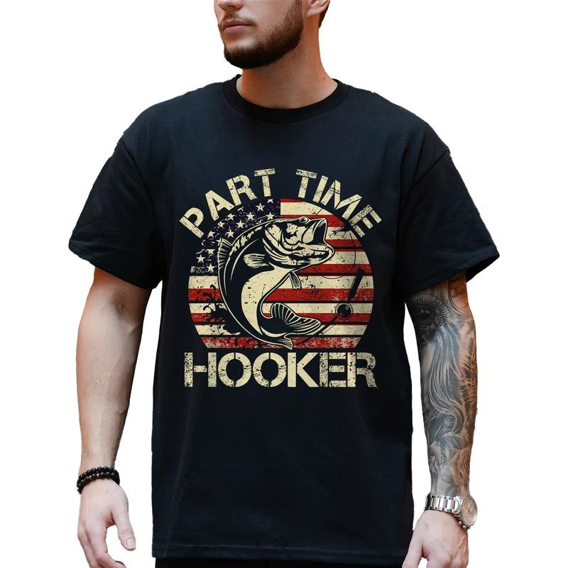 Vintage Funny Fisher Graphic Tee, Fishing Gear T-shirt For Men, Fishing Dad Unhinged Tee, Funny Part Time Fisher Shirt, Funny Gift For Him