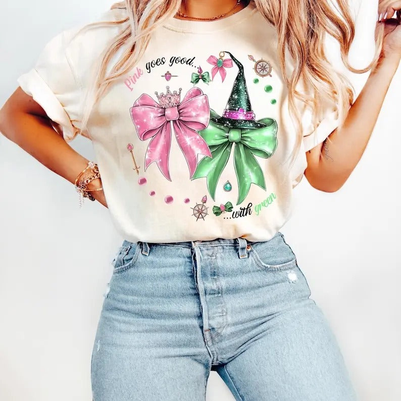 Wicked Pink Goes Good With Green Shirt, Defy Gravity Broomstick Magic Wand, Wizard Movie Fan Shirt, Wicked Musical Fan Gift