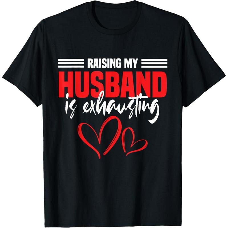 Wife Raising My Husband Is Exhausting Joke T-Shirt made in usa