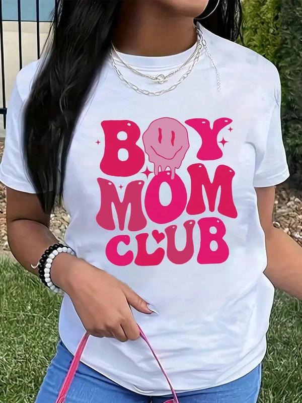Women's Cartoon Face & Letter Print Round Neck Tee, Fashion Casual Crew Neck Short Sleeve T-shirt for Daily Holiday Vacation Outdoor Wear, Ladies Clothes for All Seasons
