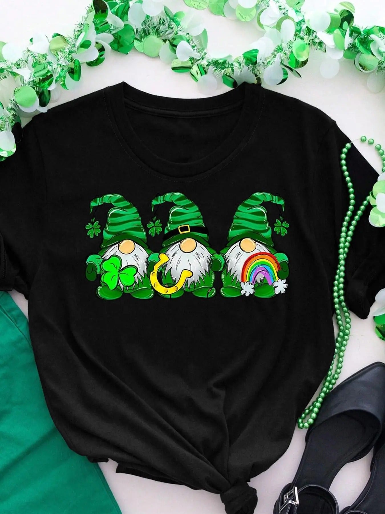 Women's Cartoon Gnome Print Round Neck Tee, Fashion Casual Crew Neck T-shirt for Daily Holiday Vacation Outdoor Wear, Ladies Clothes for All Seasons