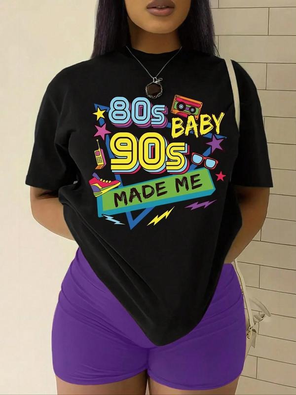 Women's Figure & Letter Print Drop Shoulder Tee, Street Fashion Casual Short Sleeve Round Neck T-Shirt for Daily Holiday Vacation Outdoor Wear, Ladies Clothes for Summer, Summer Clothes