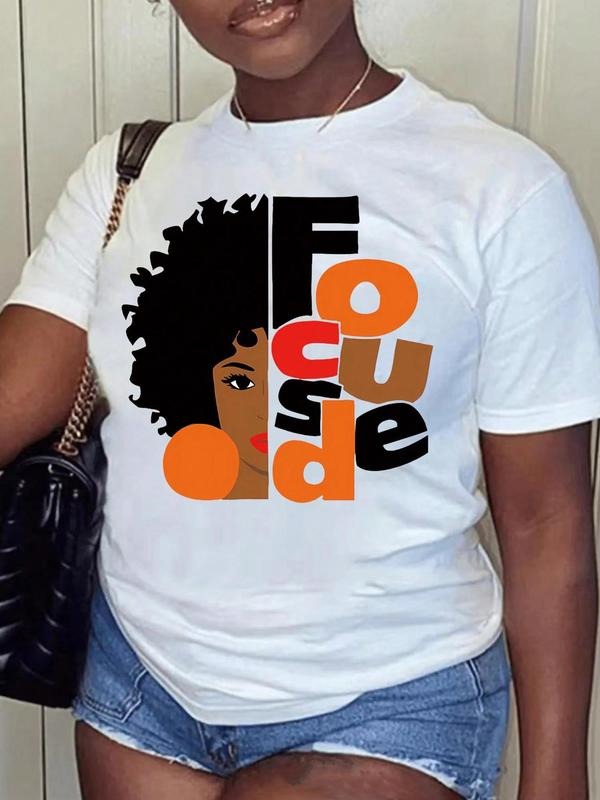 Women's Figure & Letter Print Round Neck Short Sleeve Tee, Fashion Casual Crew Neck T-Shirt for Daily Holiday Vacation Outdoor Wear, Ladies Clothes for All Seasons