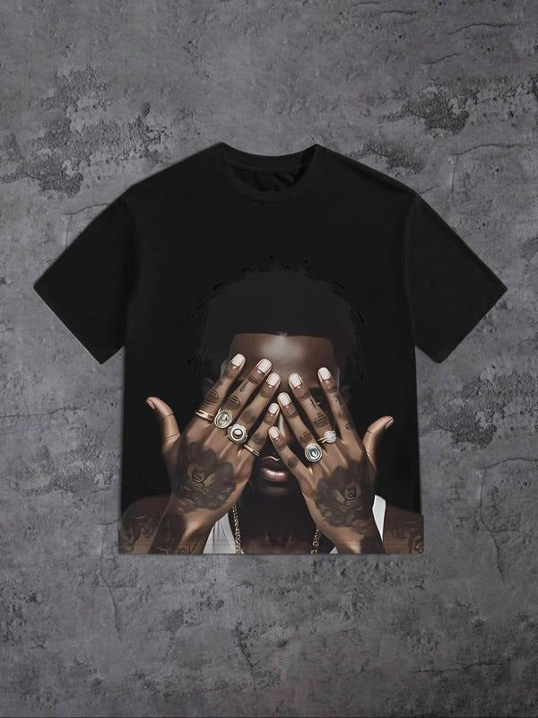 Women's Figure Print Round Neck Tee, Fashion Casual Crew Neck Short Sleeve T-shirt for Daily Holiday Vacation Outdoor Wear, Ladies Clothes for Spring & Fall