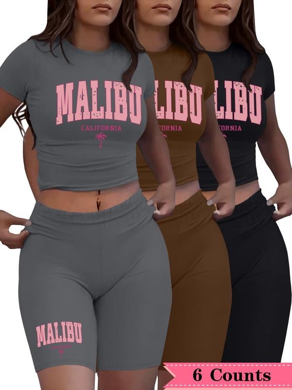Women's Letter Print Crop Tee & Skinny Shorts Set, Casual Fashion Cozy Breathable Two-piece for Daily Outdoor Wear, Ladies Clothes for All Seasonsstyle{n002}4