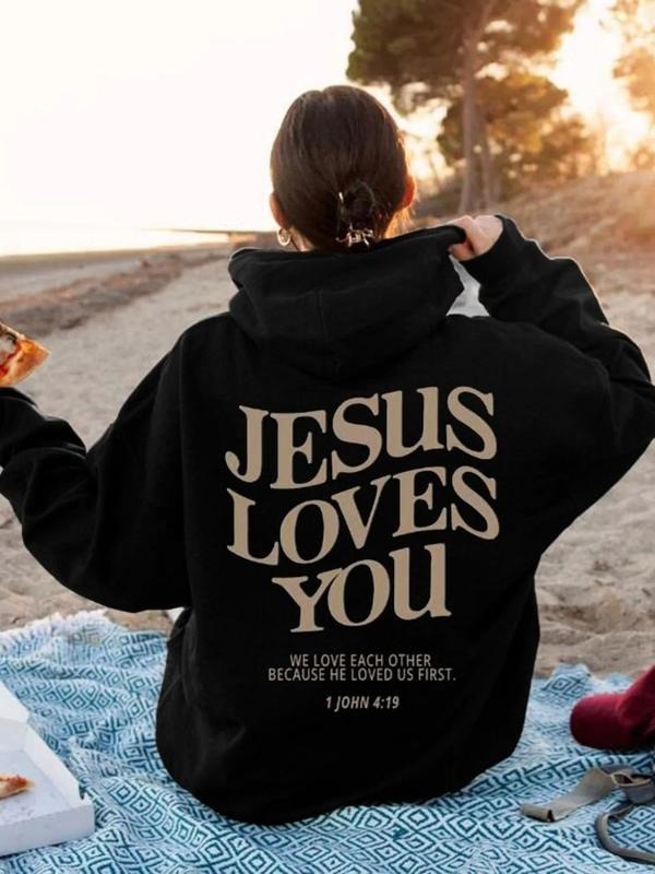 Women's Letter Print Drop Shoulder Hoodie, Fashion Casual Drawstring Pocket Hooded Sweatshirt for Daily Holiday Outdoor Wear, Women Clothing for Fall & Winterstyle{n002}9