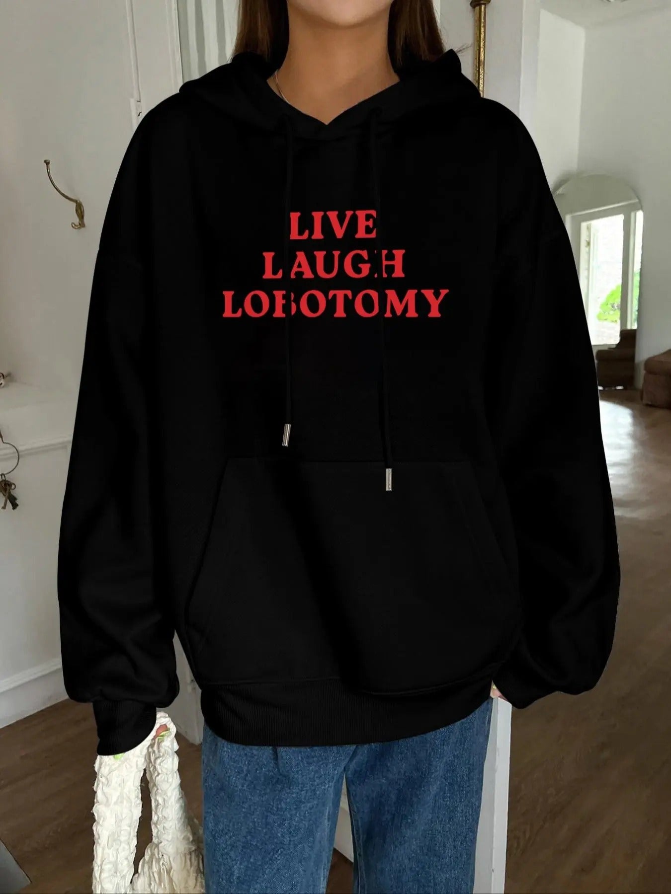 Women's Letter Print Drop Shoulder Hoodie, Fashion Casual Drawstring Pocket Hooded Sweatshirt for Daily Holiday Outdoor Wear, Women's Clothing for Fall & Winter