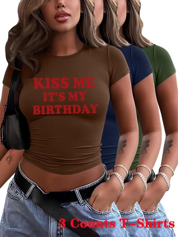 Women's Letter Print Round Neck Crop Tee, Casual Short Sleeve Crew Neck T-shirt for Daily Wear, Ladies Clothes for All Seasons, Topstyle{n002}5