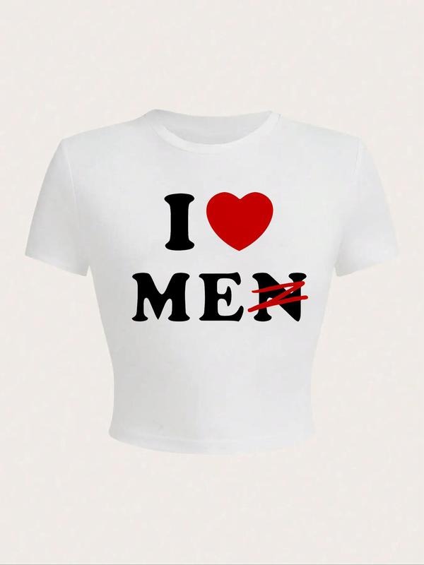Women's Letter Print Round Neck Crop Tee, Fashion Casual Crew Neck T-shirt for Daily Holiday Vacation Outdoor Wear, Ladies Clothes for All Seasonsstyle{n002}2