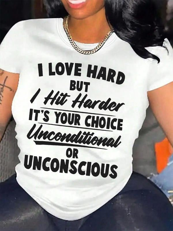 Women's Letter Print Round Neck Short Sleeve Tee, Fashion Casual Crew Neck T-shirt for Daily Holiday Outdoor Wear, Ladies Clothes for All Seasons