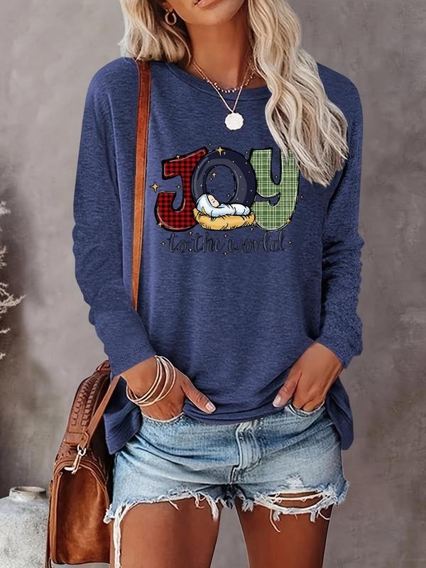 Women's Letter Print Round Neck Tee, Casual Long Sleeve Crew Neck T-shirt for Fall & Winter, Women's Top for Daily Wearstyle{n002}21