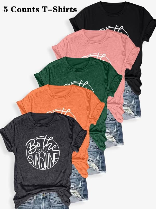 Women's Letter Print Round Neck Tee, Casual Short Sleeve Crew Neck T-shirt for Summer, Fashion Women's Top for Daily Wearstyle{n002}15