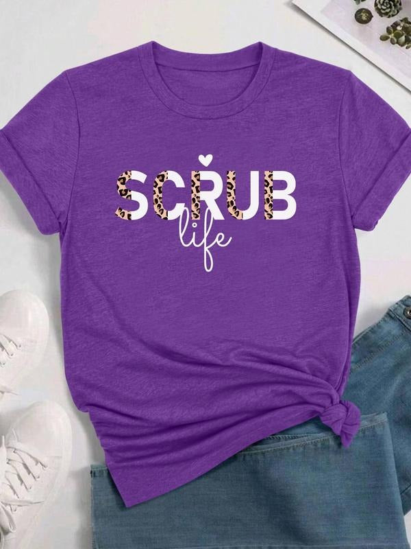 Women's Letter Print Round Neck Tee, Fashion Casual Crew Neck Short Sleeve T-shirt for Daily Holiday Vacation Outdoor Wear, Ladies Clothes for All Seasonsstyle{n002}3