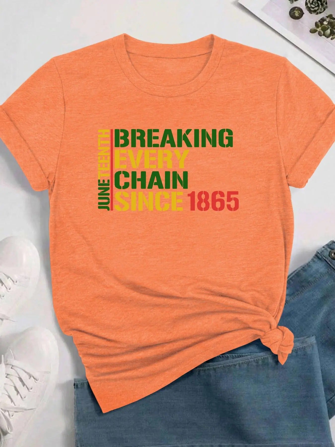 Women's Letter Print Round Neck Tee, Fashion Casual Crew Neck Short Sleeve T-Shirt for Daily Holiday Vacation Outdoor Wear, Ladies Clothes for All Seasonsstyle{n002}5
