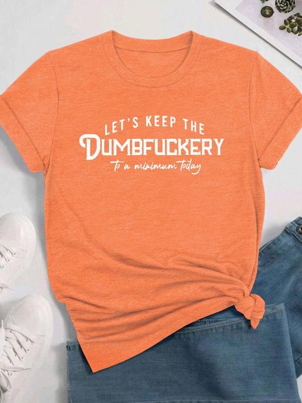 Women's Letter Print Round Neck Tee, Fashion Casual Crew Neck T-Shirt for Daily Holiday Vacation Outdoor Wear, Ladies Clothes for All Seasons