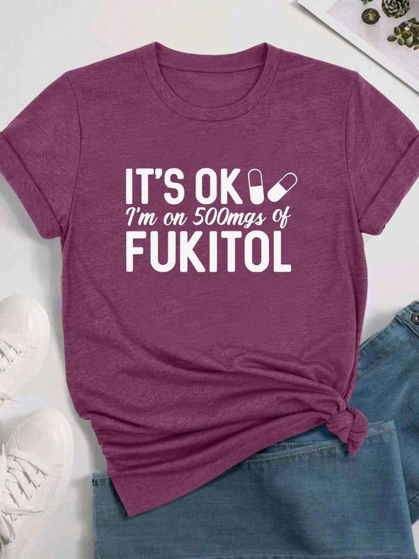 Women's Letter Print Round Neck Tee, Fashion Casual Crew Neck T-Shirt for Daily Holiday Vacation Outdoor Wear, Ladies Clothes for All Seasonsstyle{n002}8
