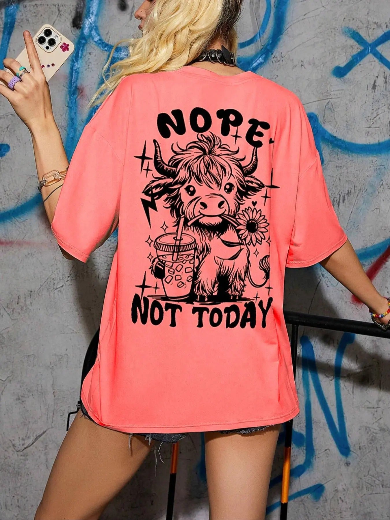 Women's Letter Print Round Neck Tee, Fashion Casual Crew Neck T-shirt for Daily Holiday Vacation Outdoor Wear, Ladies Clothes for Summerstyle{n002}9