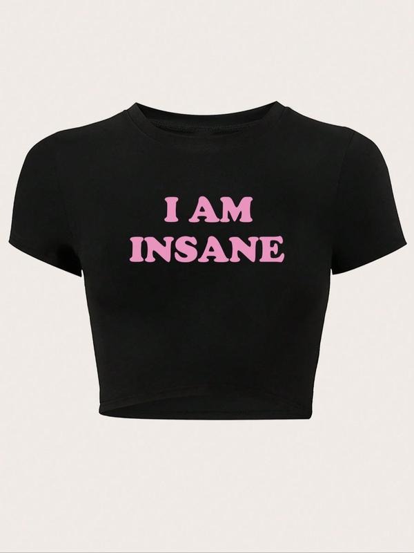 Women's Letter Print Short Sleeve Round Neck Crop Tee, Casual Streetwear Crew Neck T-Shirt for Summer, Ladies Clothes for Daily Wear
