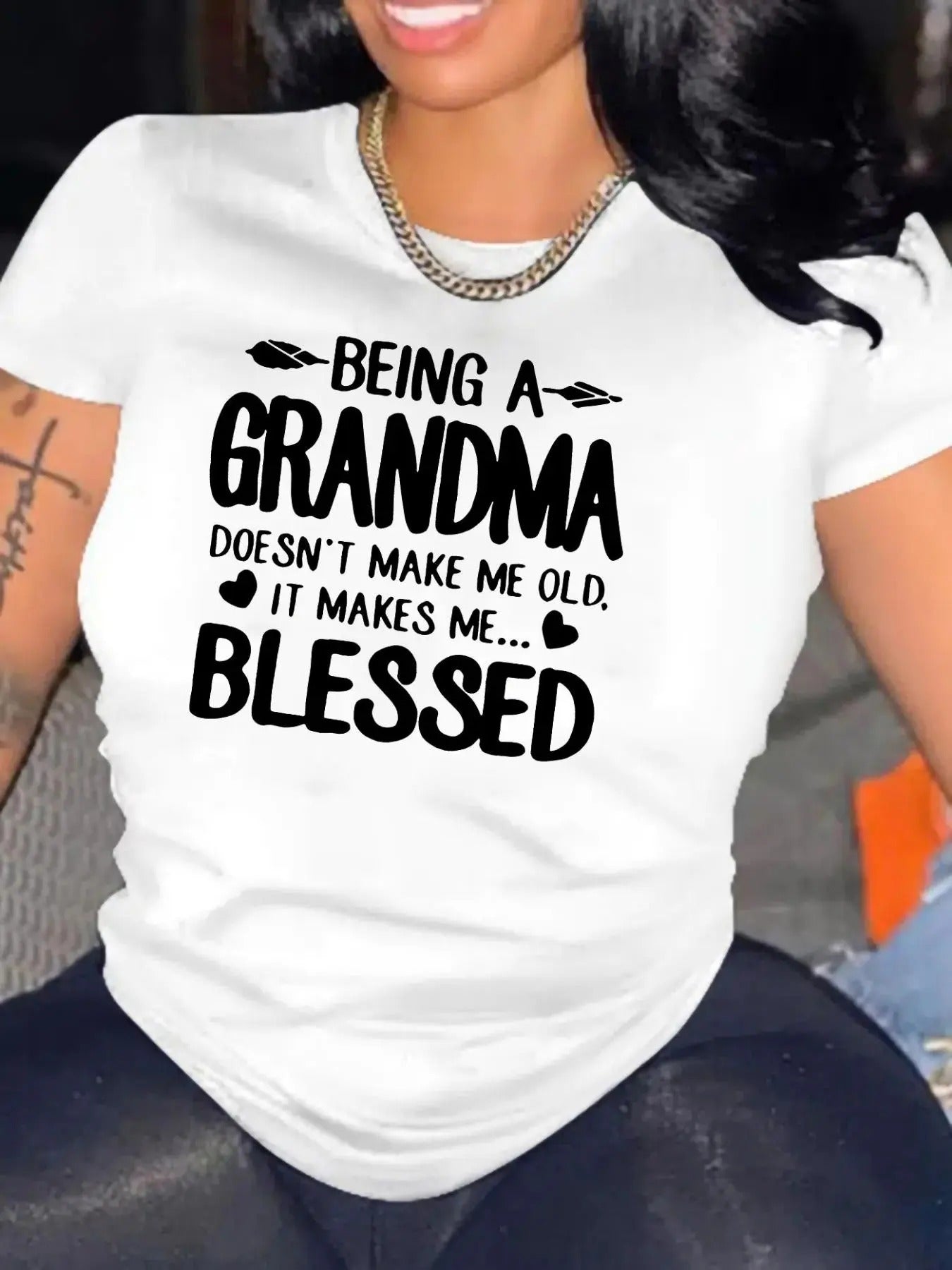 Women's Slogan Graphic Round Neck Tee, Fashion Casual Crew Neck Short Sleeve T-Shirt for Daily Holiday Vacation Outdoor Wear, Women's Top for Summer