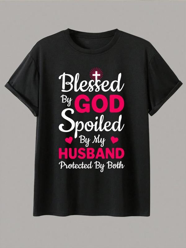 Women's Slogan & Heart Print Round Neck Short Sleeve Tee, Fashion Casual Crew Neck T-Shirt for Daily Holiday Vacation Outdoor Wear, Ladies Clothes for All Seasons